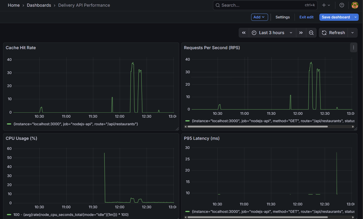 Using Nginx as a reverse proxy is another topic altogether. You need to configure proxy settings for four Node.js processes, choose a load balancing strategy (in our case, least_conn), set connection timeouts and keepalive options, and ensure that the headers are correctly transmitted. If SSL is required, you’ll need to add an extra hour for obtaining certificates from Let’s Encrypt as well as setting up redirects. Finally, there’s Prometheus with Grafana: you have to install both tools, configure scrape targets for all components, and create basic dashboards for monitoring purposes. It will take another hour or two, but the monitoring and visualization capabilities are well worth it.