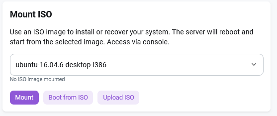 After selecting the operating system, Mount and Boot from ISO buttons: