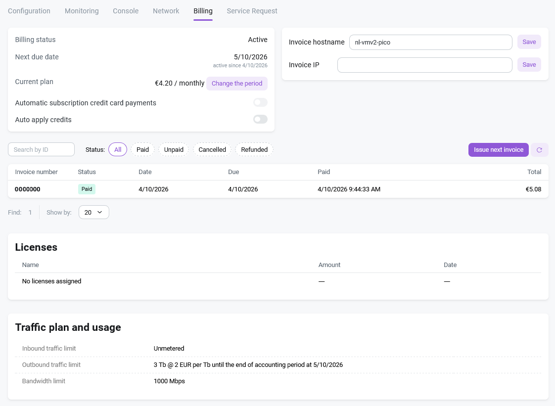 - Generate the next invoice related to this server.