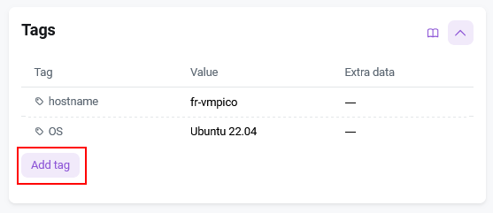 A tag is an arbitrary label for a specific server in the format key-value-additional parameter. Some tags are set automatically by the system upon delivery—for example, the username, password set during installation, server name, etc.