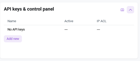 API Keys and Control Panel¶