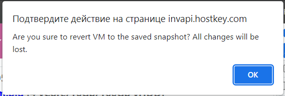 Un message supplémentaire s'affichera à l'écran lors de la restauration du serveur depuis un snapshot ou de la suppression d'un snapshot existant. Vous devez confirmer l'action et cliquer sur le bouton OK.