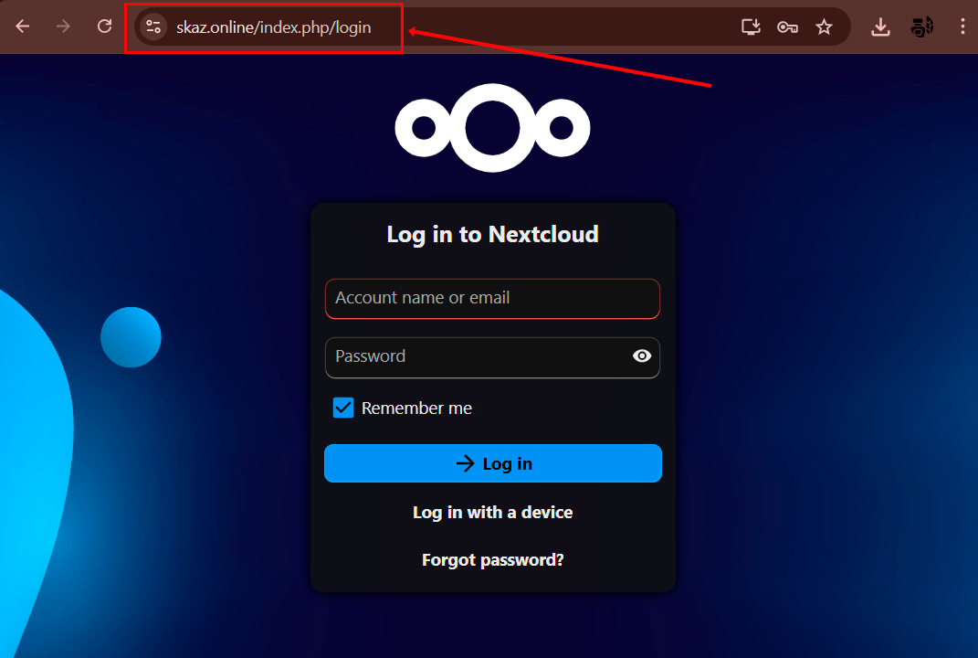 Si vous spécifiez votre domaine (par exemple, cloud.monentreprise.com), le panneau sera accessible via cette adresse.