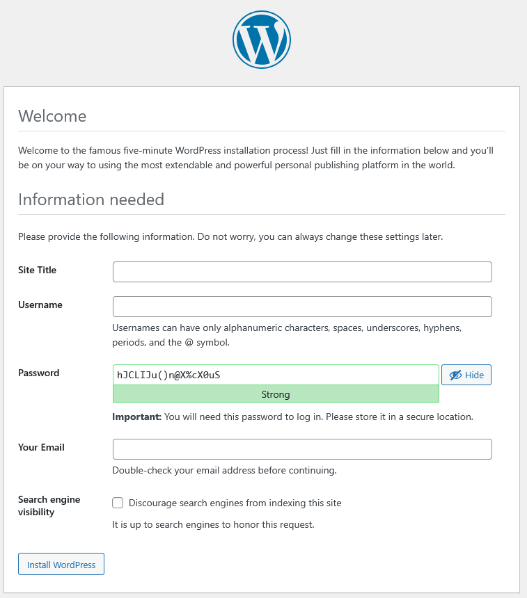 Cliquez sur Install Wordpress.