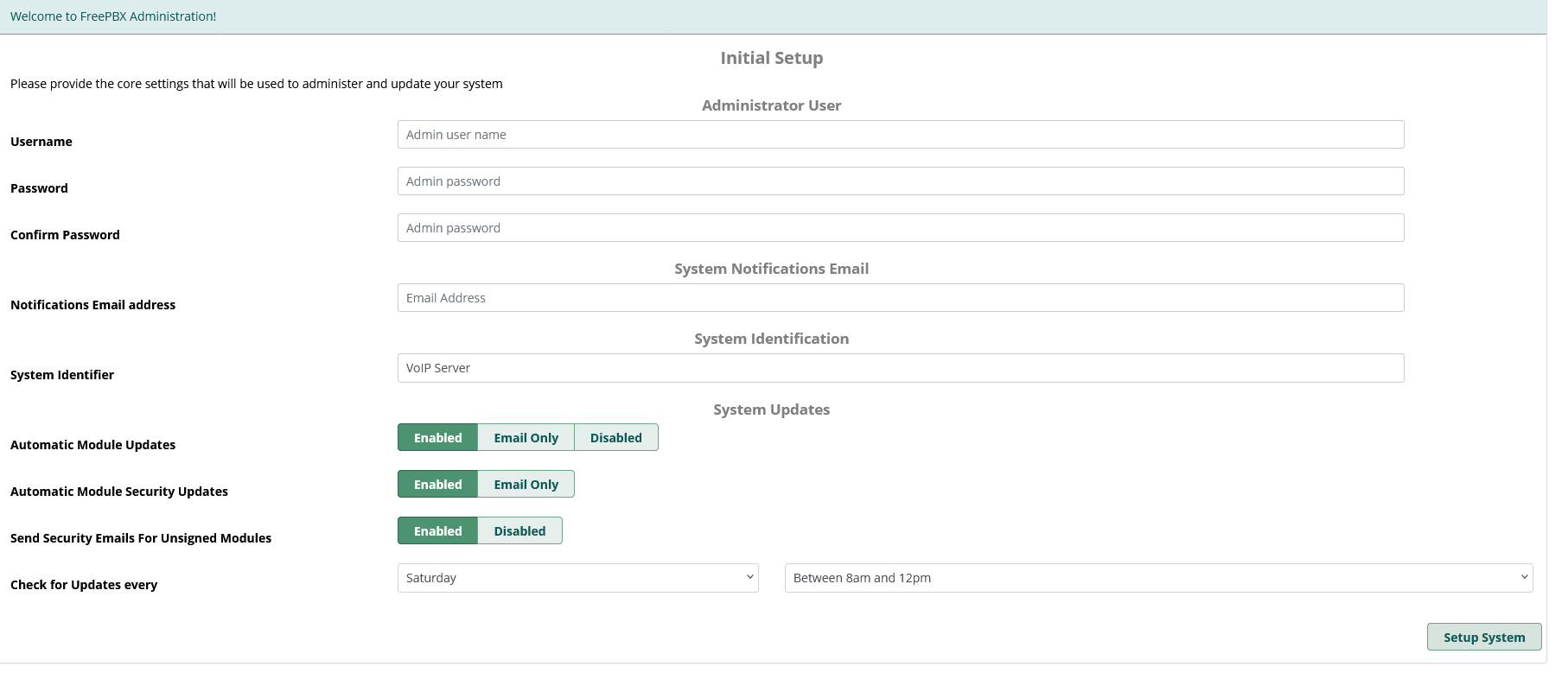 - System Identifier - entrez l'identifiant du système de téléphonie (ex. VOIP Server).