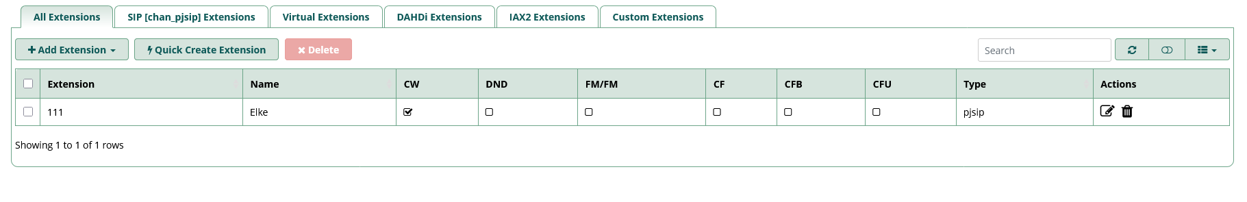 - Gestion des appareils SIP - enregistrement et configuration de téléphones SIP, softphones, passerelles, prise en charge des protocoles : SIP, PJSIP (recommandé), IAX2. Modèles d'appareils pour la configuration en masse.