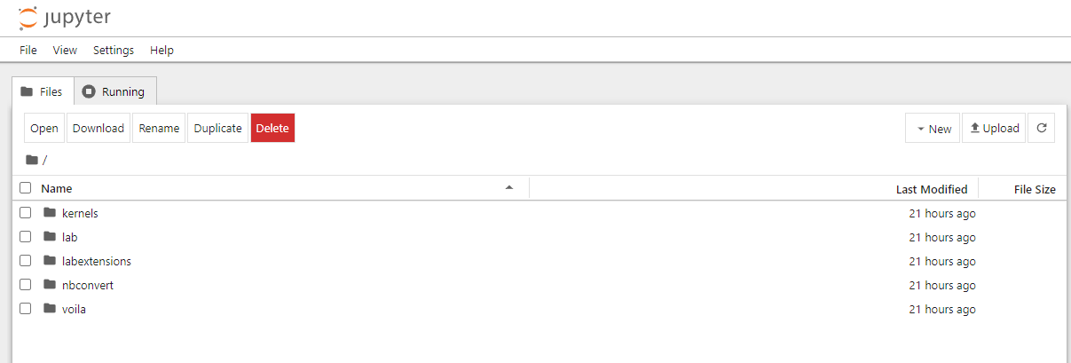 After successful authentication, you'll be taken to the main Jupyter interface page: