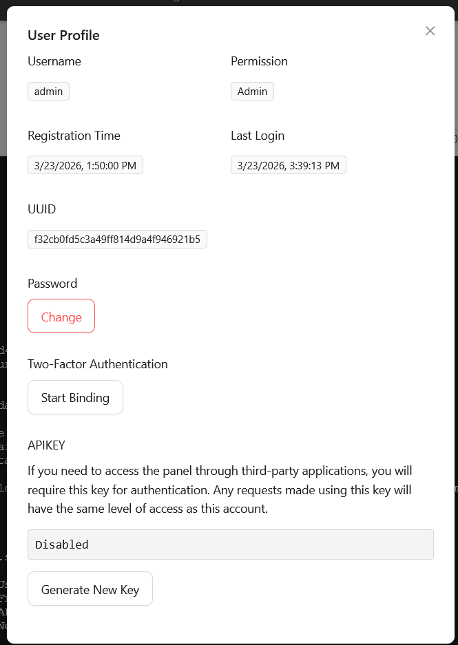 N'oubliez pas de changer le mot de passe en utilisant le menu Profile. Vous pouvez également configurer les paramètres d'authentification à deux facteurs dans ce menu.