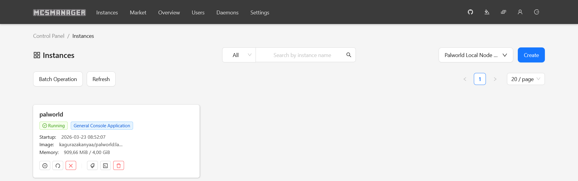 Une fenêtre affichant l'instance Palworld déjà en cours d'exécution s'ouvrira.
