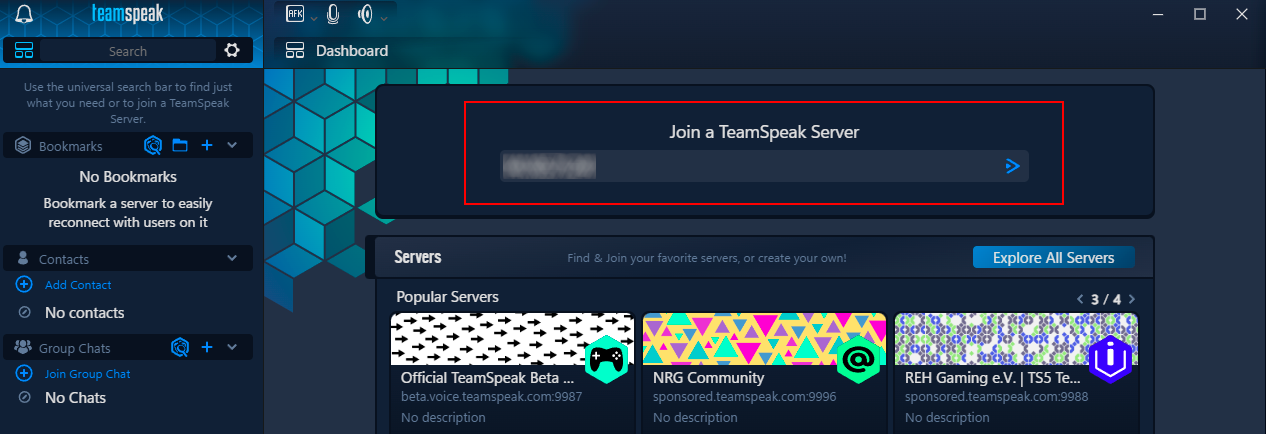 To begin using the service, download the TeamSpeak client to your local device and install it.