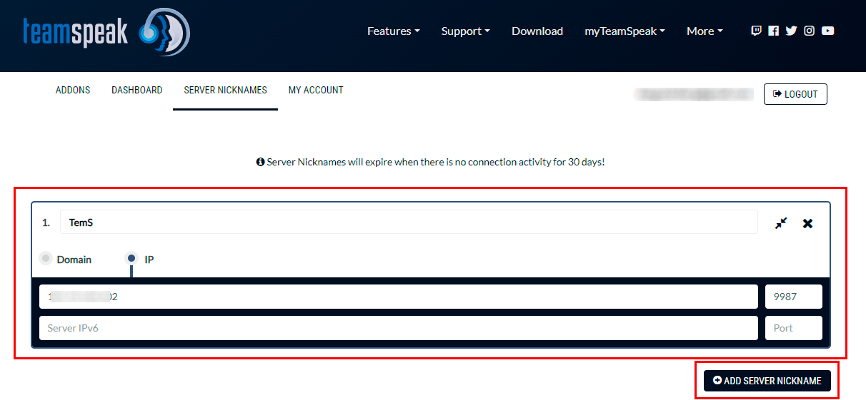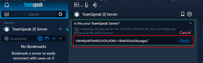 - Optional - Register in your personal TeamSpeak account. This will simplify server management and configuration.