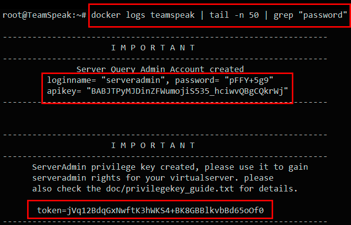 It's important to note that the privilege key can only be used once, and the ServerQuery password should be changed immediately after the first login.