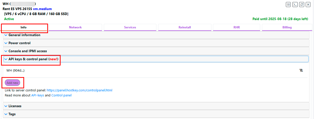 Configuration du module HOSTKEY VPS/Dedicated¶