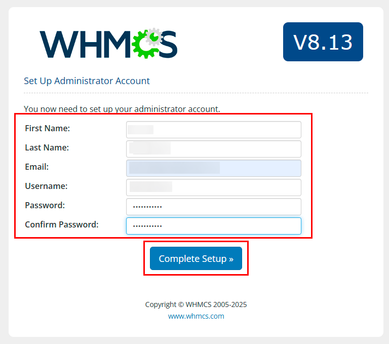 Après avoir rempli tous les champs, cliquez sur Complete Setup :