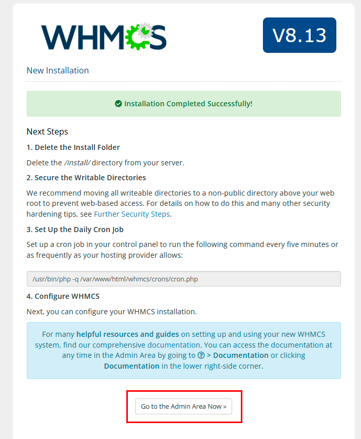 Panneau d'administration : https://whmcs{Server_ID_from_Invapi}.hostkey.in/admin