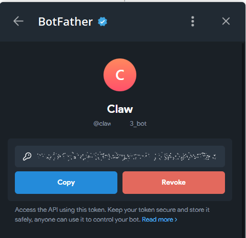 En utilisant l’outil intégré @BotFather, créez un bot pour discuter avec OpenClaw :