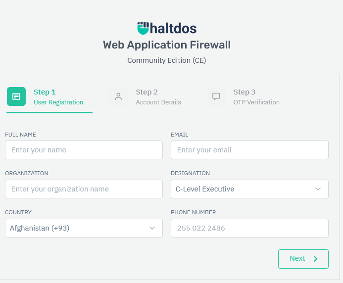 Temps d'installation : 15-20 minutes, y compris le système d'exploitation. Pour que Haltdos Community WAF fonctionne correctement, les ressources système minimales suivantes sont requises :