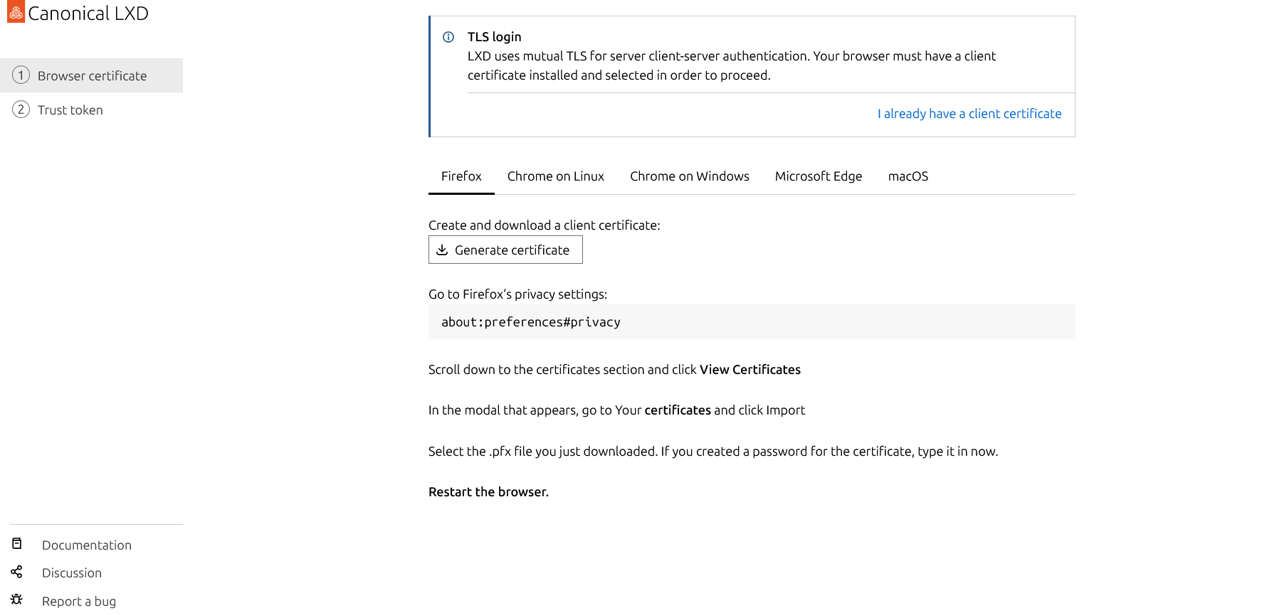 Generate certificatepour générer un certificat individuel et assurer le bon fonctionnement. -