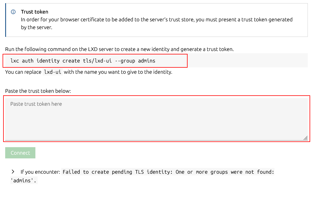 - Copiez la sortie de la commande dans le champ Paste the trust token below