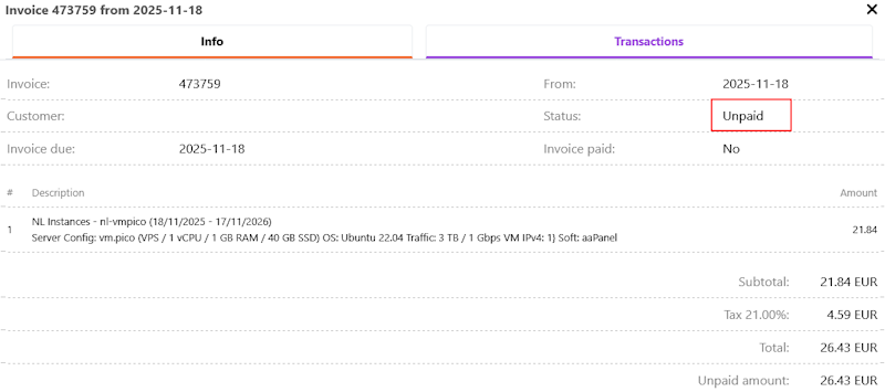 Ordering a server through the site is intended for new clients of our company. After registering on the website, you can order a server via the Invapi Control Panel.
