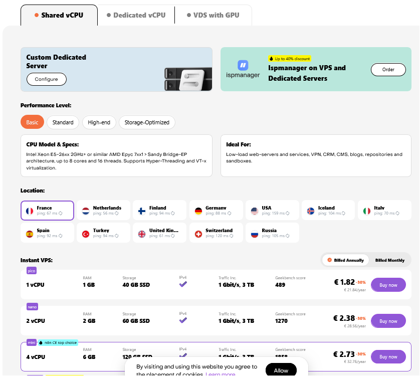 - Processus de commande d'un serveur VPS/VDS sur le site HOSTKEY