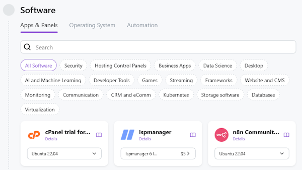Si vous sélectionnez un logiciel pré-installé depuis le Marketplace, il n'est pas nécessaire de choisir un système d'exploitation - nous allons automatiquement sélectionner l'option la plus appropriée pour l'installation.