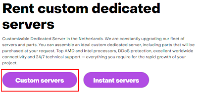 Cliquez Order a server et vous serez redirigé vers la page avec les offres spéciales de location de serveurs prêts à l'emploi. Choisissez l'option souhaitée et suivez les instructions pour passer votre commande en fonction du type de serveur.