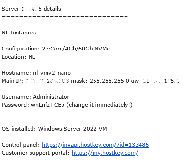 - Connectez-vous à Votre Compte sur le site HostKey .