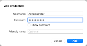 Cliquez sur Show Options > tab User > spécifiez le nom (par exemple,