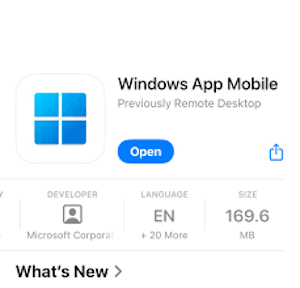 Pour iOS et Android, il est recommandé d'utiliser l'application officielle Windows App (anciennement Microsoft Remote Desktop).