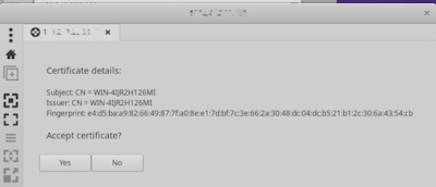 Lors de la première connexion, confirmez le certificat (cliquez sur