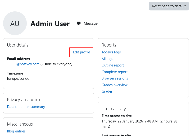 After making any changes, click the Update Profile button at the bottom of the page. For more information on the basic settings of Moodle, see the documentation of the developers.