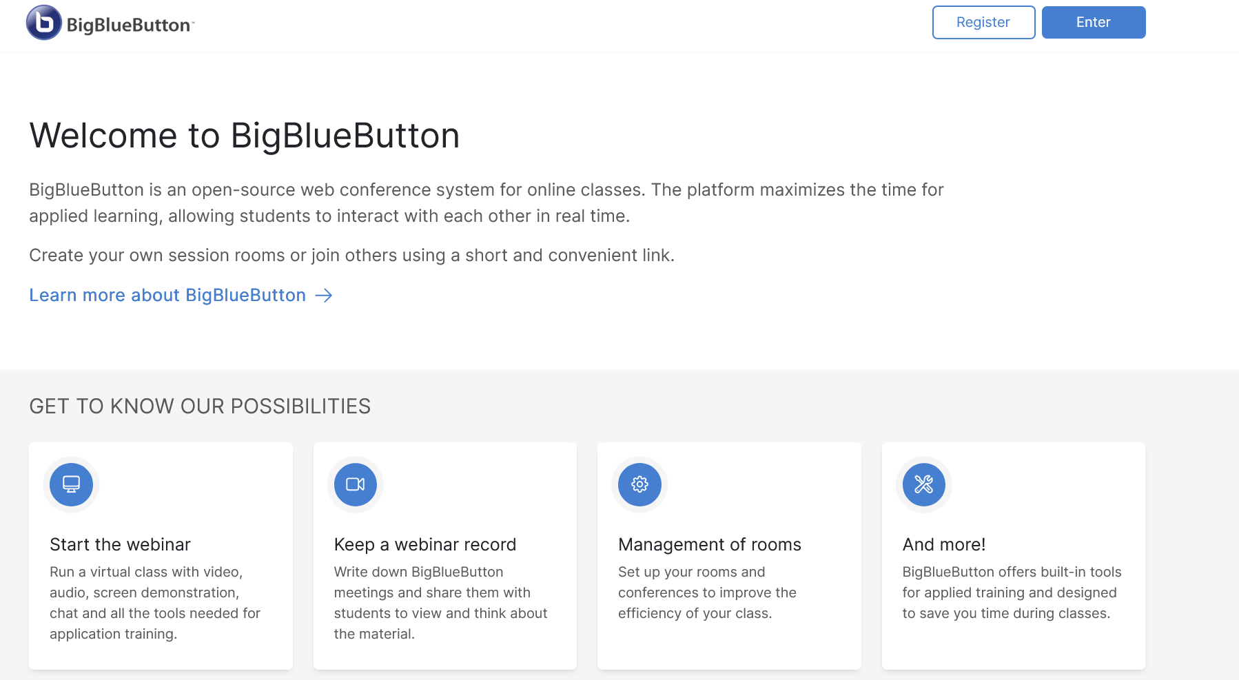 BigBlueButton - is a cloud-based service for organizing video conferences and webinars. It allows for online meetings with the ability to share presentations, screen sharing, and other useful tools for remote collaboration.
