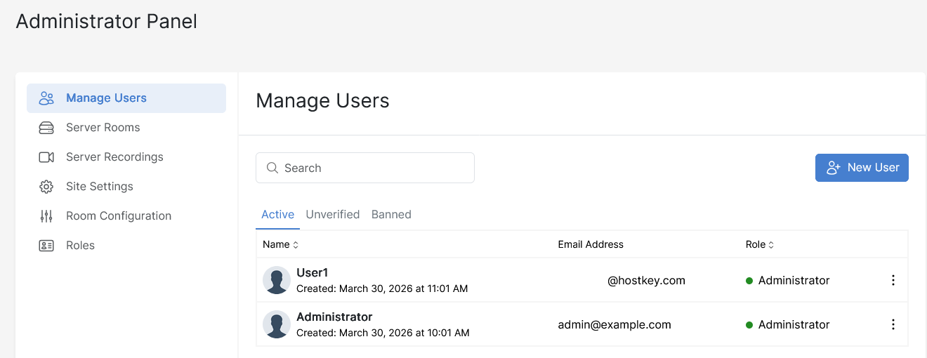 To create a new conference, click the New Room button: