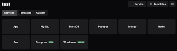 - Built-in support for PostgreSQL, MySQL/MariaDB, Redis, MinIO, among other popular services