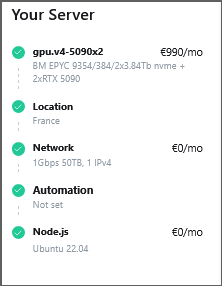 Go to the GPU section and select the model of the graphics card (e.g., NVIDIA A5000, RTX 5090, etc.).