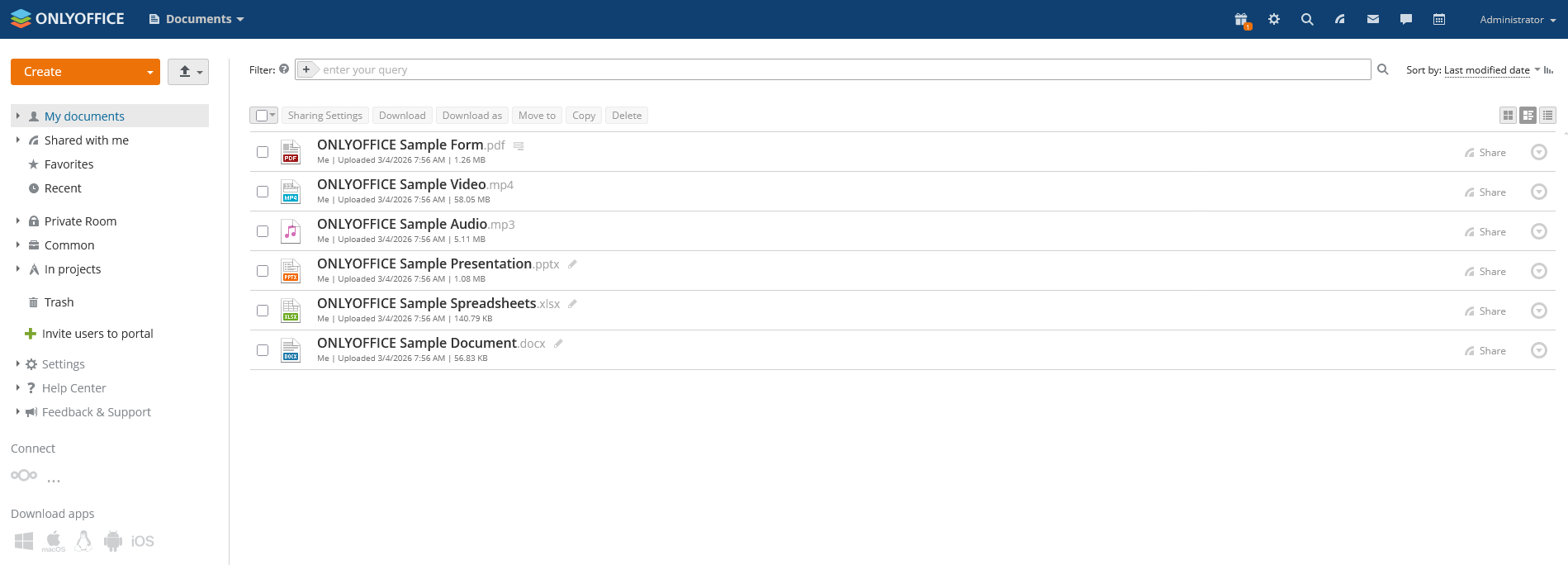 Temel ONLYOFFICE Workspace ayarları hakkında ayrıntılı bilgi resmi ONLYOFFICE Workspace dokümantasyonunda mevcuttur.