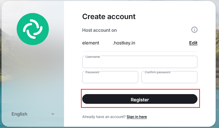 Web arayüzü şu adreste kullanılabilir: https://element{Server_ID_from_Invapi}.hostkey.in