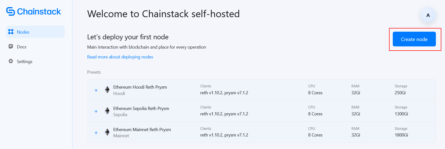 Chainstack, kendi altyapınızda blok zinciri düğümlerini çalıştırmak ve yönetmek için bir kontrol düzlemidir (yönetim paneli). Chainstack Self-Hosted, veriler ve altyapı üzerinde tam kontrolü elinizde tutarken rutin görevleri otomatikleştirmek için kullanışlı bir web arayüzü kullanarak donanımınızda veya bulutta blok zinciri düğümlerini çalıştırmanıza olanak tanır.