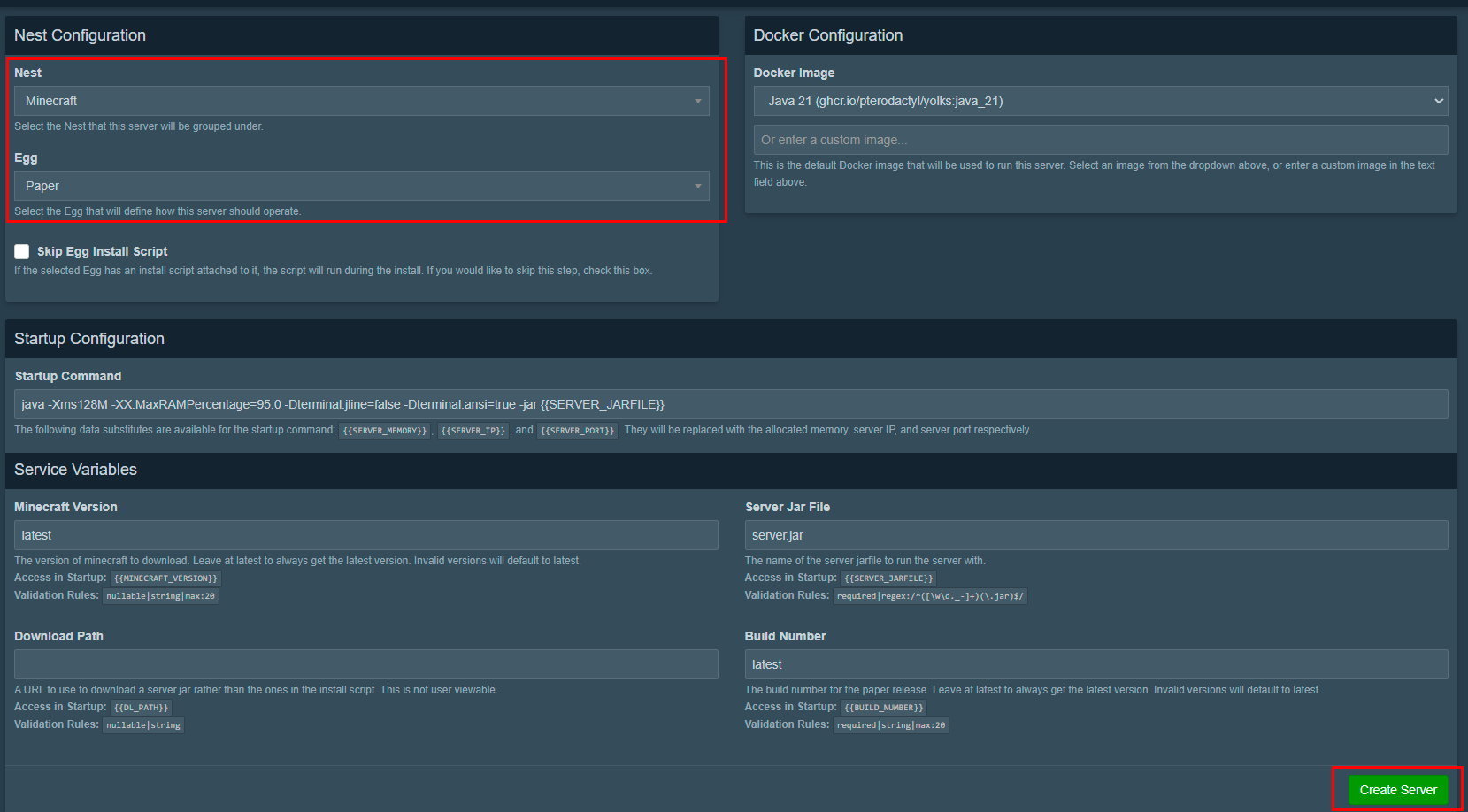 - Game Eggs bölümünde bir kategori seçin (örn. Minecraft);