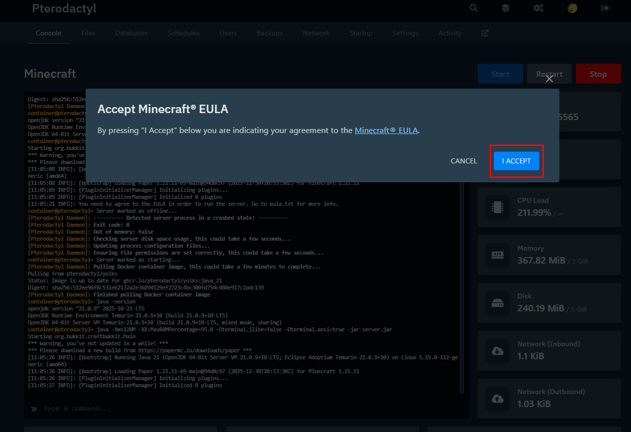 Pterodactyl, aşağıdakileri birleştiren modern bir oyun sunucusu yönetim çözümüdür: