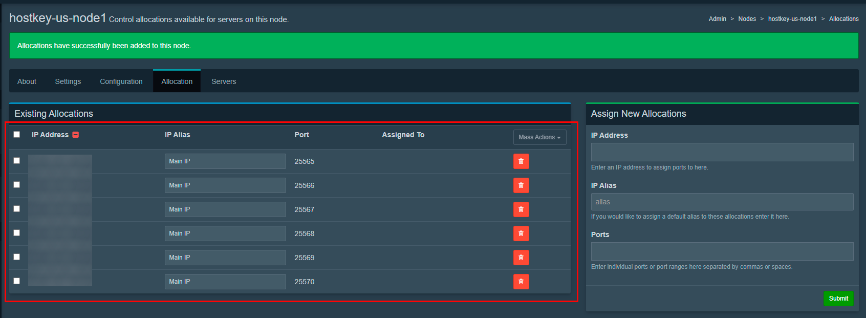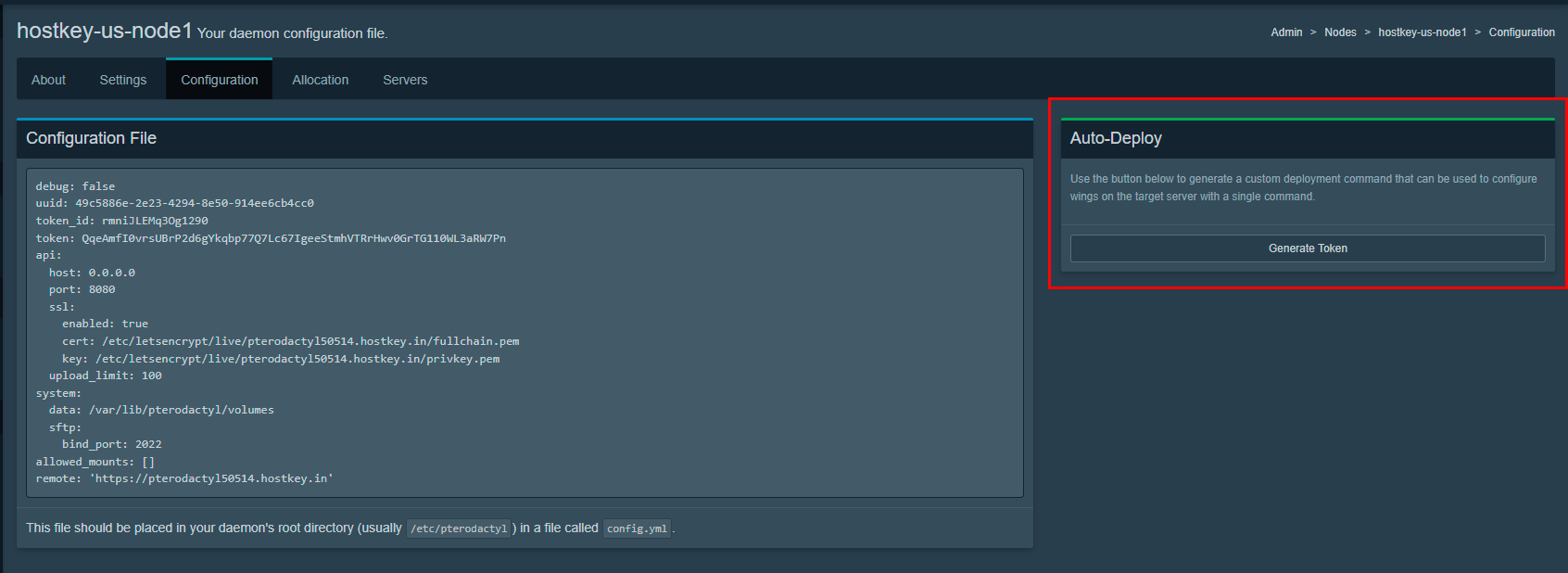 - Yönetici panelinde, node'un Configuration sekmesine gidin;