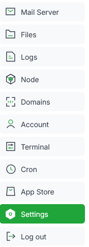 Ana panel yönetim menüsünün Settings bölümüne gidin.