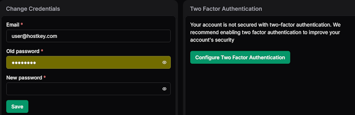 - Authentication - Burada panonun yönetici şifresini değiştirebilir ve iki faktörlü kimlik doğrulamayı yapılandırabilirsiniz (önerilir).