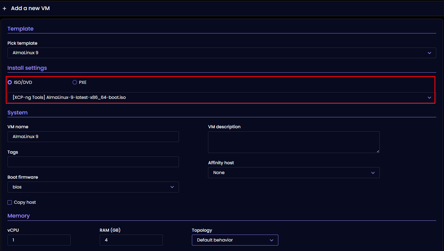 XCP-ng'de ayarları kontrol edin