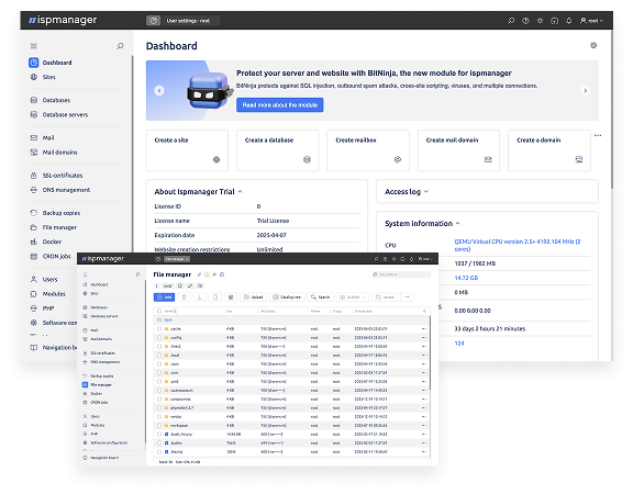 Ispmanager is a control panel for website hosting, server management and shared hosting businesses. It allows you to manage domains, email accounts, databases and much more.